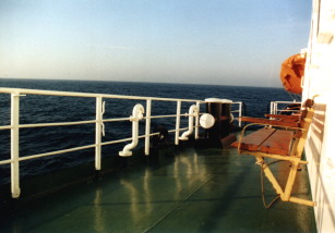 Die Insel liegt hinter mir. Sie ist verschwunden. Das Schiff trägt mich im Auf und Ab der Wellen. Der Himmel ist eine blanke Leinwand und das Meer sein dunkler Spiegel. Das Auge heftet sich an den Horizont. Scharfe Trennlinie zwischen oben und unten. Alles verliert und findet sich im Blau. Die weiße Reling und eine leere Bank im Sonnenlicht: Die Stille wird sichtbar.